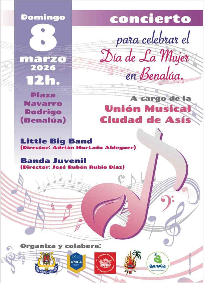 En Benalúa se celebra el dia de la Mujer con un Concierto de la Union Musical Ciudad de Asis a las 12 horas en la Plaza de Navarfro Rodrigo.