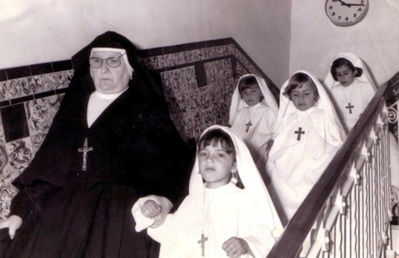 Sor Conchita y niñas de Comunion